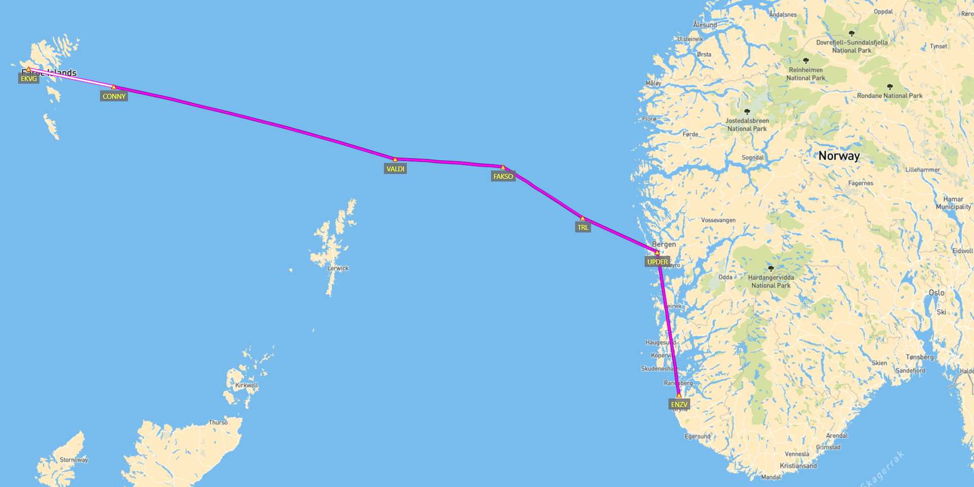 | Route & Distance | EKVG CONNY VALDI FAKSO TRL UPDER SOGTI ENZV [559 nmi, 1036 km] |